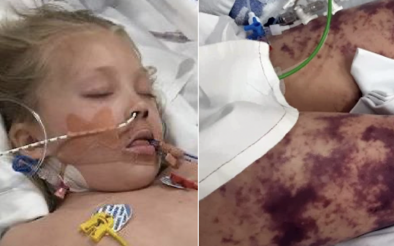 While the 7-year-old girl’s mother, Aimee, was on vacation with her husband, she spotted black and blue marks on her daughter’s, Brogan, legs. Unfortunately, the mom assumed they were bruises. Just 12 days before the bruises appeared, the little girl was diagnosed with an eye infection and was given antibiotics. Little did they know at the time, the marks were actually not bruises and instead they were a symptom of a serious disease. The 7-year-old was taken to a hospital, where doctors were forced to amputate her left foot to save her life.