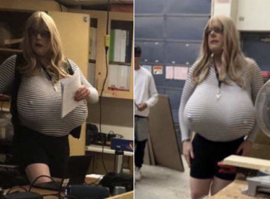 Transgender teacher has been caught on video leading a class full of students while wearing ‘oversized fake bre-sts.’…