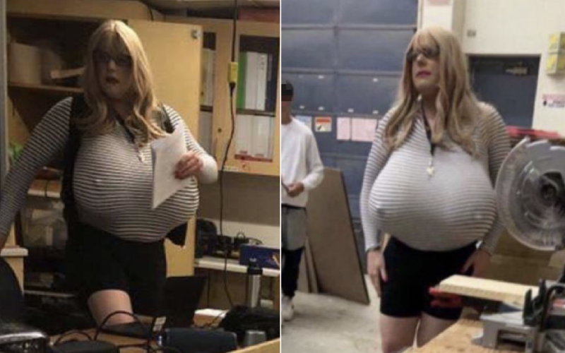 Transgender teacher has been caught on video leading a class full of students while wearing ‘oversized fake bre-sts.’ The high school teacher can be seen in front of the students in a classroom setting and operating shop class machinery in unprofessional manner, IJR reports. The educator, who last school year appeared as a man, is now calling himself Kayla.