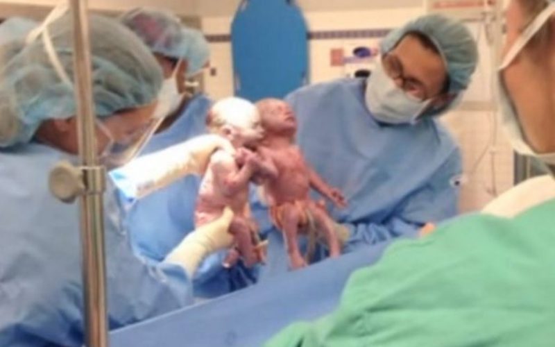 But the reason for their shock was not a bad thing. Her twins were fine. But the way they came out of mom left the professionals in the delivery room in awe of the miracle. That is when the obstetrician lifted the twins out. Not separately. But as a pair. This is not standard practice. But the twins would not release each other no matter how hard the doctor pried at their little hands. And then the doctor lifted the twin girls up over the screen. As soon as Sarah laid eyes on her beautiful newborn girls, she burst into tears.