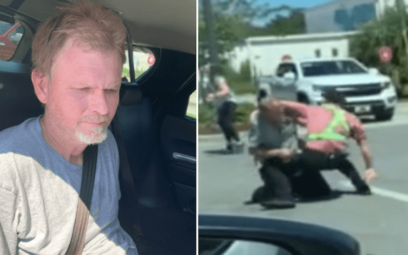 Restaurant worker was caught on video rushing in to save a screaming woman holding a baby. The 43-year-old suspect reportedly attempted to grab her keys and steal her car, according to a statement shared Wednesday by the Sheriff’s Office. He has been charged with carjacking with a weapon and battery. He approached the mother with a stick and demanded she give him the keys to her car. “He then grabbed the keys from the waistband of her pants, opened her car door, and got inside,” according to the news release. When the victim began screaming for help, the restaurant worker ran to intervene.