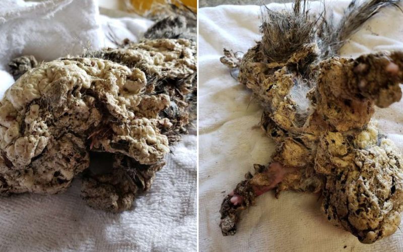 They tried baiting it with food. That didn’t work. So they had to get down and gently pull the creature out from underneath the car. Meanwhile, Jaydon found a box. They put the foamy creature into it and then called Aidan’s family to see what they should do next. Because Aidan’s mother was as big an animal lover as her son, she encouraged her boy to rush the creature to an animal clinic. She knew they would try to save the creature’s life without putting the bill onto the family. That’s how this animal wound up under the care of the good people at the local veterinary clinic. Dr. Eagan, the veterinarian, got to work. She could tell that the animal might have been dead if it weren’t rescued by the teens. A few more hours in its state and it would never have been able to pull through and survived. She sedated the creature and then resorted to rubbing alcohol to remove the foam from its fur.
